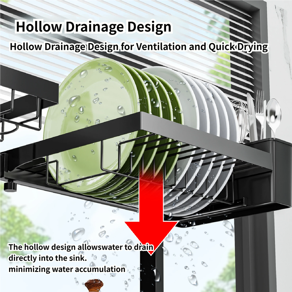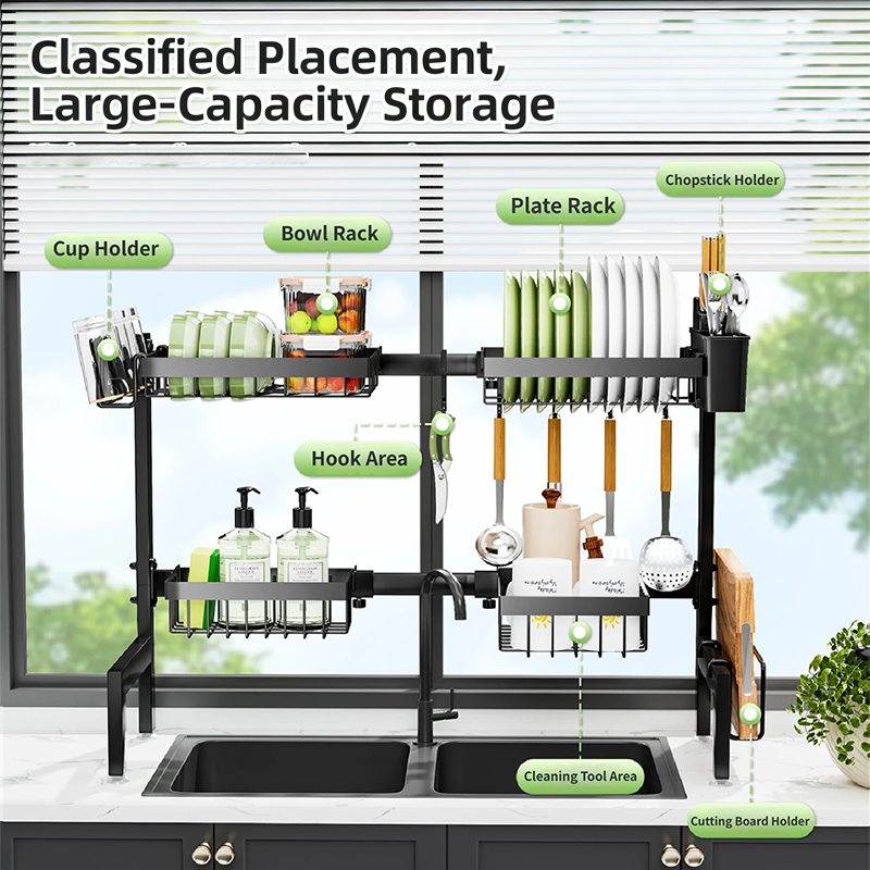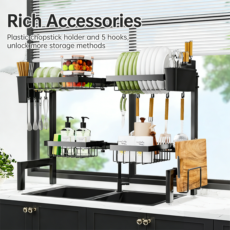 Égouttoir à vaisselle métallique grande capacité pour évier, 4 paniers, gain de place pour cuisine