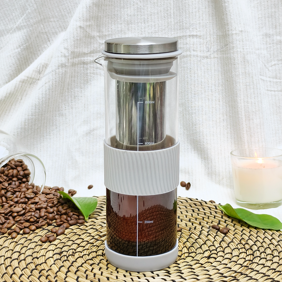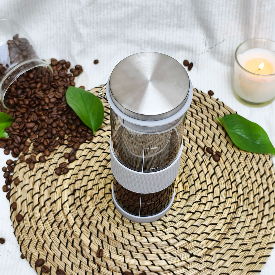 Carafe à café moderne et élégante en verre borosilicate transparent de grande capacité avec filtre à extraction pour latte