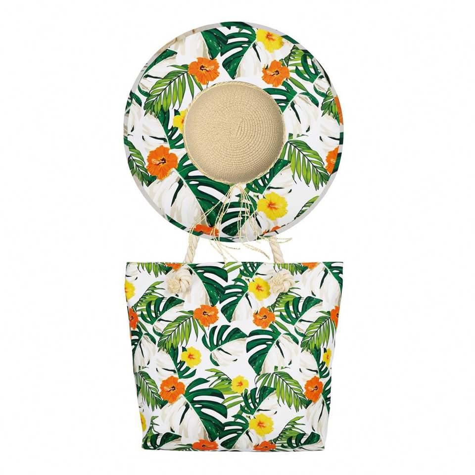 Chapeaux pour dames de grande capacité bicolores blanc et vert à motif de feuilles tropicales avec sac assorti Sacs à main et sacs à main pour femmes