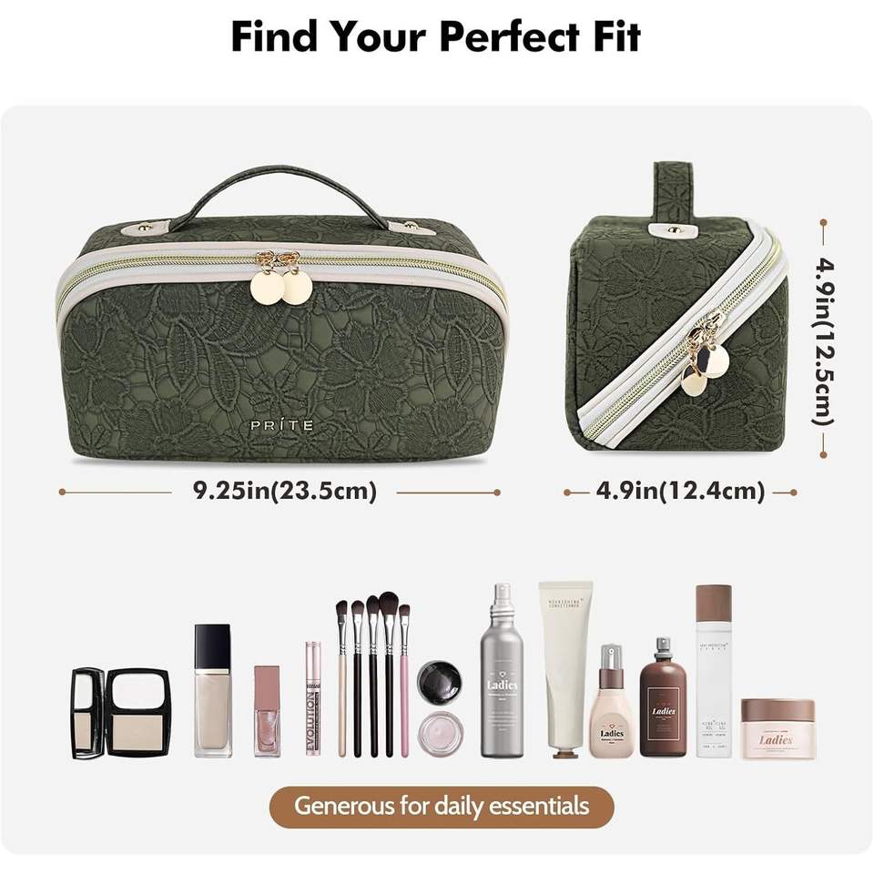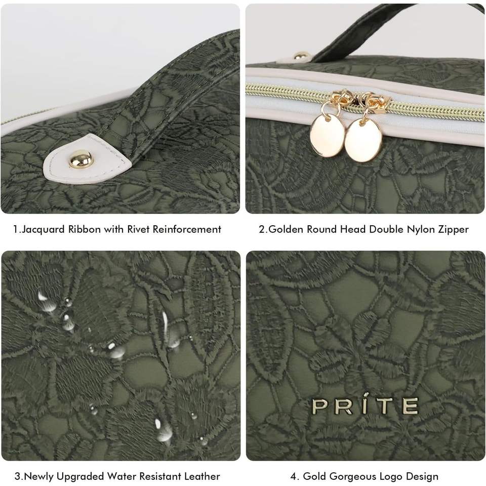 Grande trousse de toilette de voyage en cuir PU imperméable avec séparateurs transparents et poignée, organiseur de maquillage pour femmes