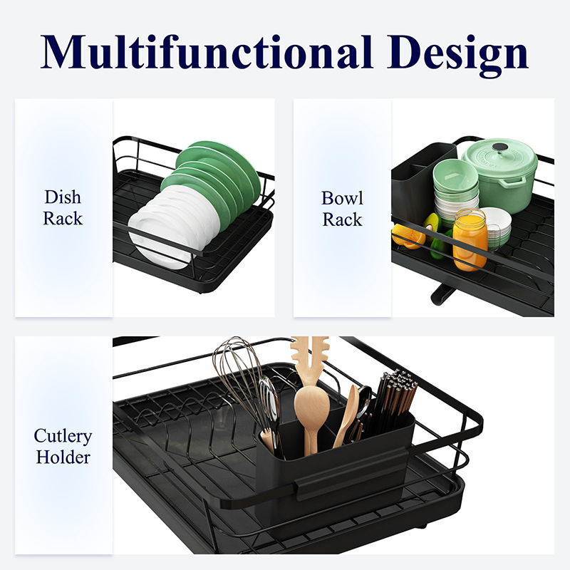 Grand égouttoir à vaisselle en acier au carbone monocouche sur l'évier avec support de rangement pour ustensiles