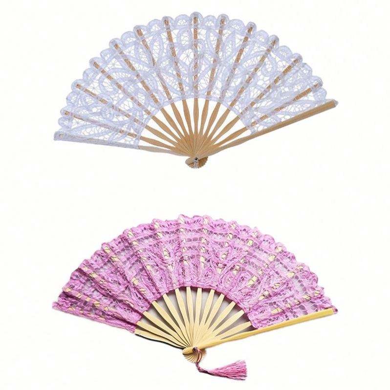 Grand éventail pliant en bambou sculpté et peint, motif dentelle, écologique, art populaire, décoration d'intérieur, cadeau d'affaires, promotion, souvenir de fête