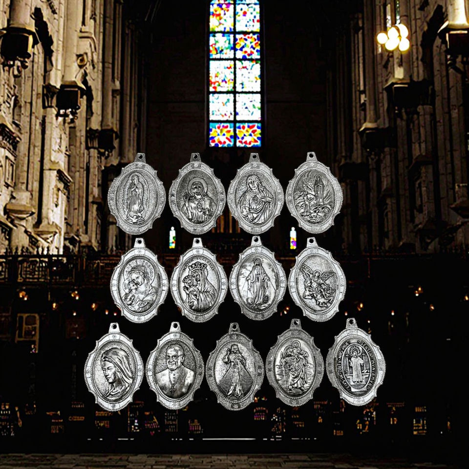 Grande médaille de saints catholiques artisanat religieux argent bénédiction Protection vierge marie jésus saint benoît pendentifs breloques pour bricolage