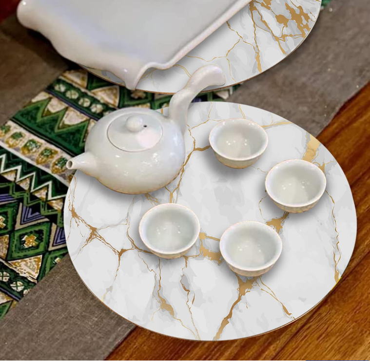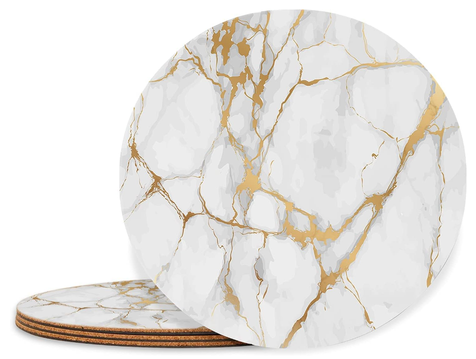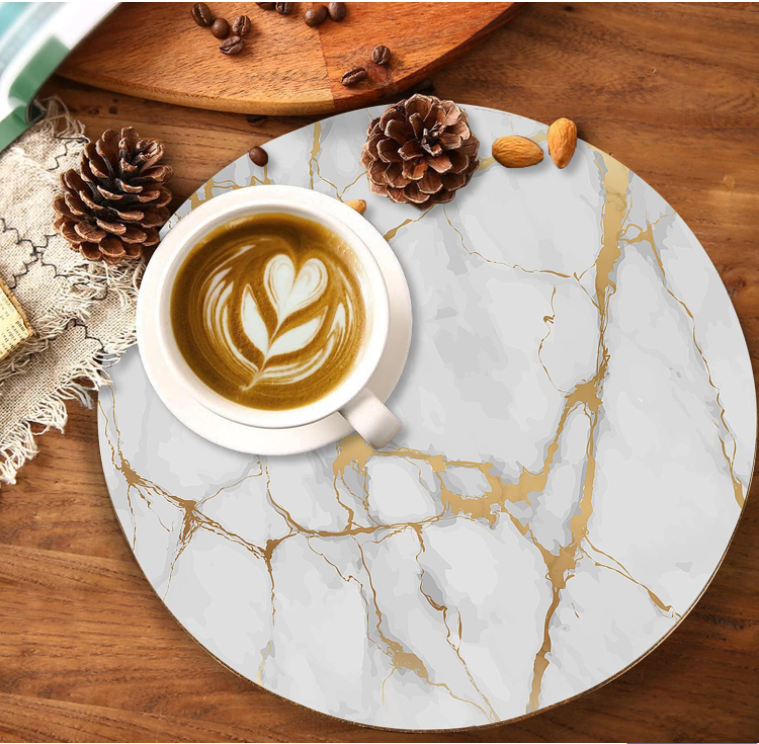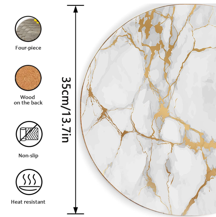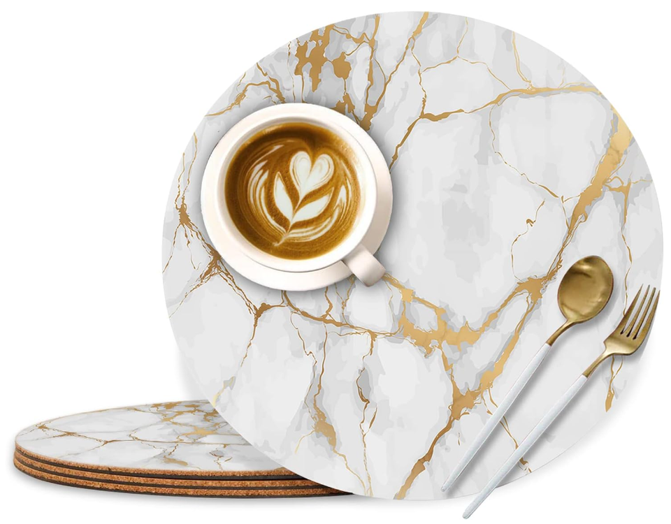 Grands cercles napperons en liège Table à manger Hot Pots Pads Plaques Lavable Imperméable Antidérapant Tache Blanc Marbre Doré Tapis Pads