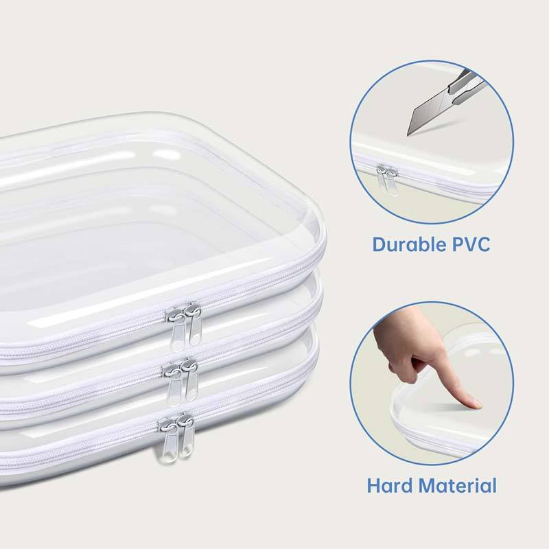 Large Clear Hard Shell Zippered Case Pouches Waterproof Cosmetic Bag Kid's Toy Storage Organizer Bins Pencil Case