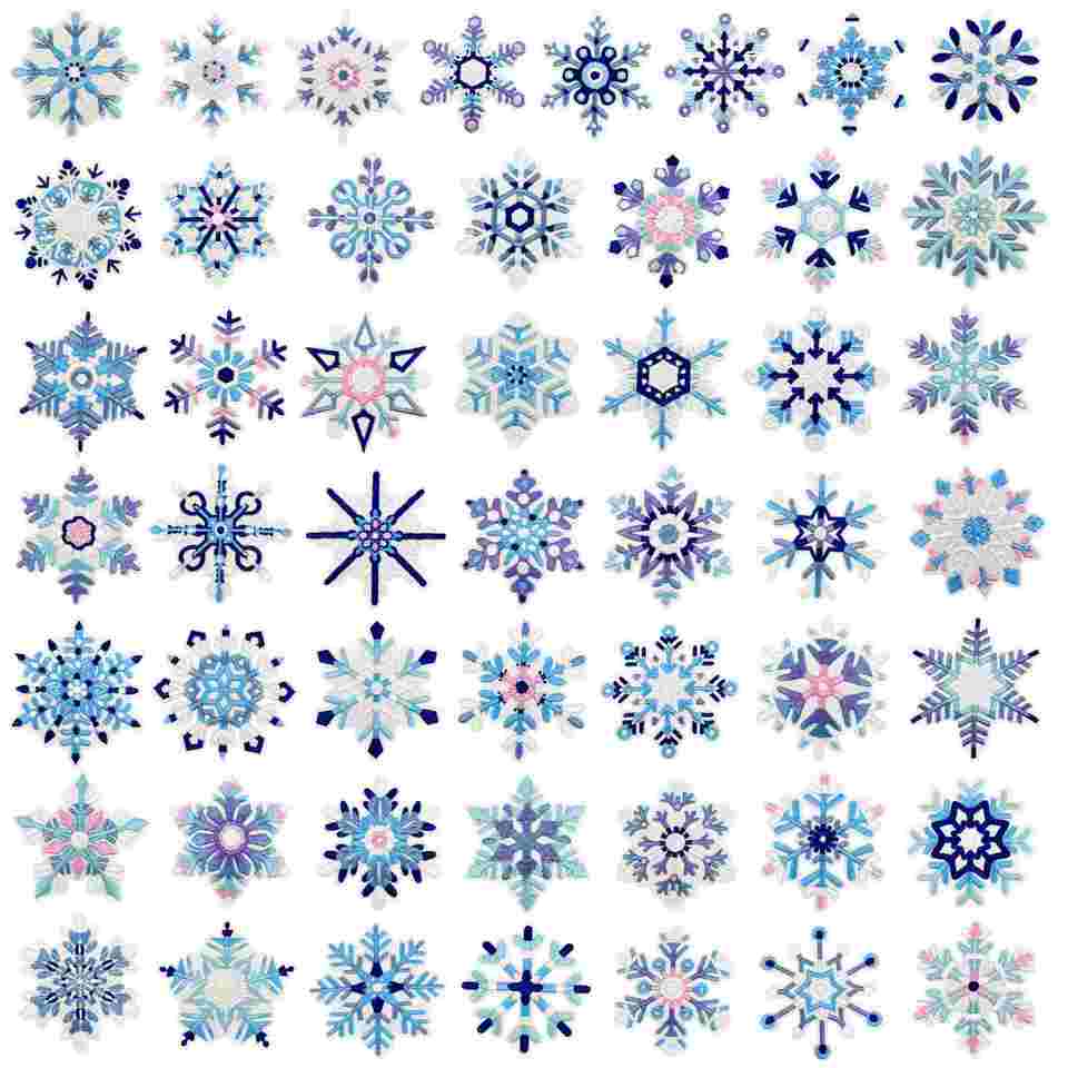 Grande collection de patchs brodés thermocollants bleus motif neige pour la décoration de vêtements, chapeaux et sacs