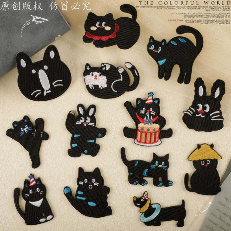 Grande collection de patchs autocollants mignons en forme de chien saucisse et de chat pour la décoration de chapeaux et de vêtements