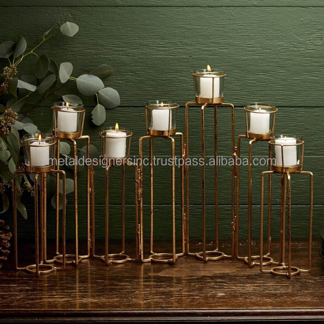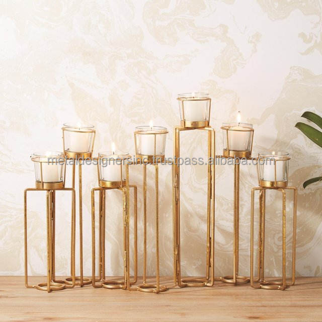 Grand style contemporain en métal doré fait à la main pour la Saint-Valentin Décoration intérieure 8 bougeoirs chauffe-plat