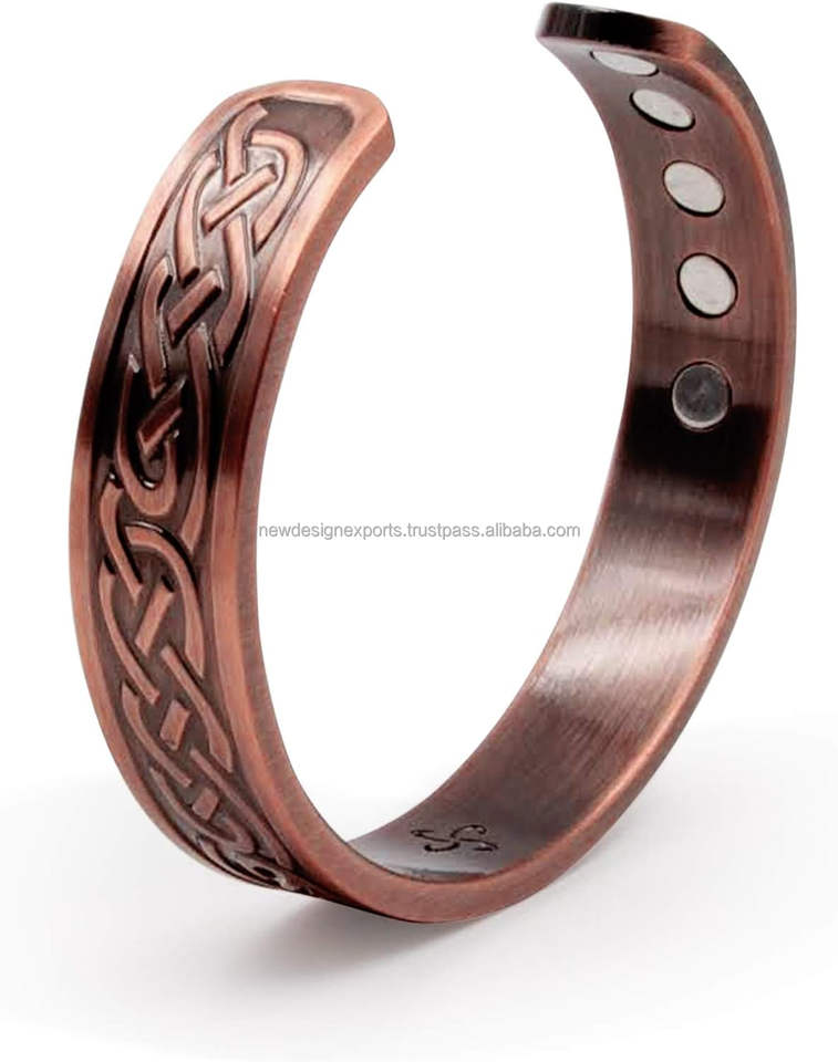Grand bracelet magnétique celtique en cuivre pour hommes, avec 10 aimants