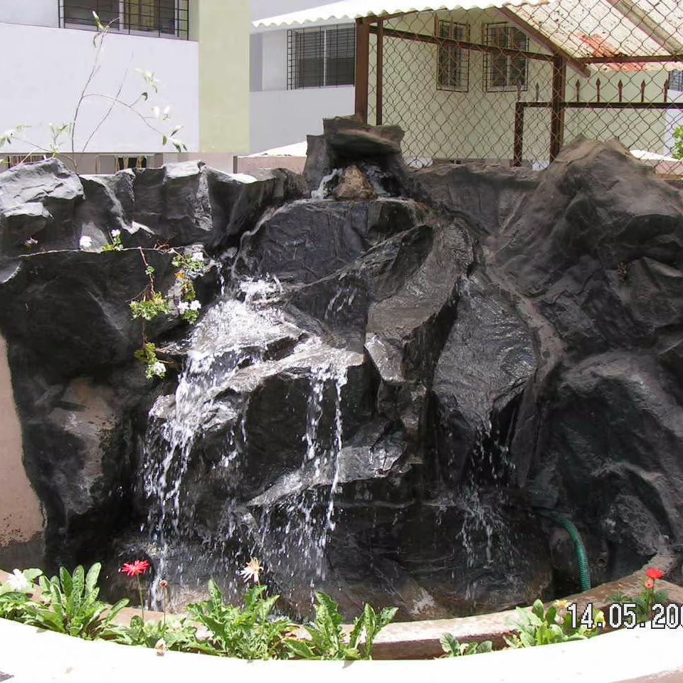 KNT Creations Grande cascade murale d'angle en pierre texturée, en fibre de verre, faite à la main, imperméable et résistante aux intempéries, ornements de jardin