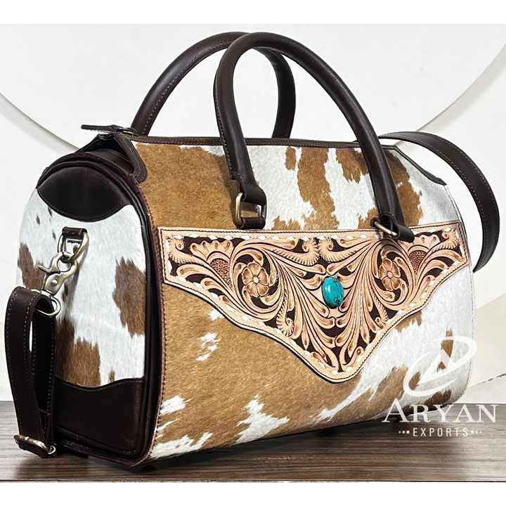 Grand sac Speedy en cuir de vachette, sacs à main western en cuir travaillé à la main avec bandoulière, sac de voyage spacieux, sac à bandoulière élégant