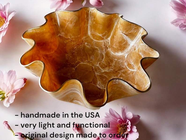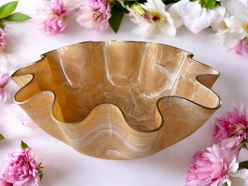 Grand bol décoratif en résine époxy crème, design géode, fait main, pour servir