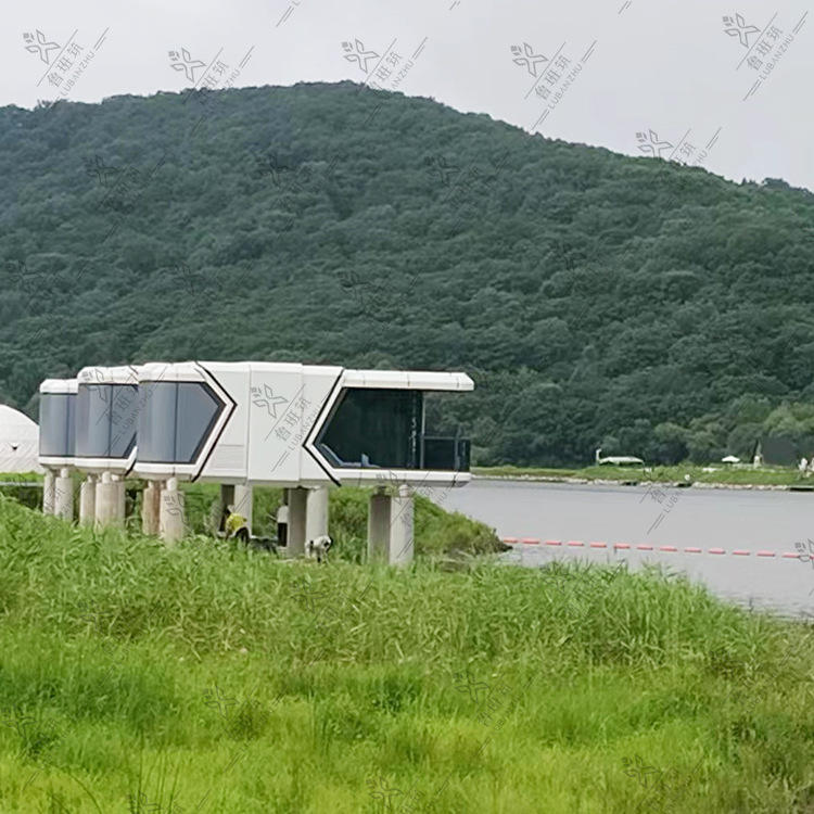 Projet de grande zone touristique culturelle, capsule spatiale rouge en ligne, B&B, hôtel en conteneur mobile