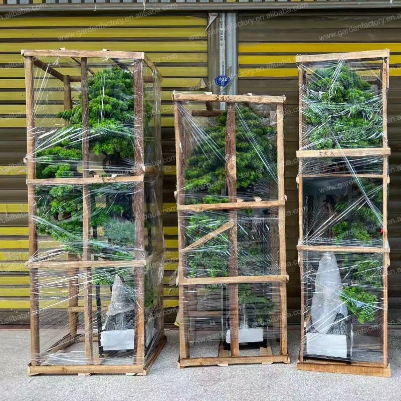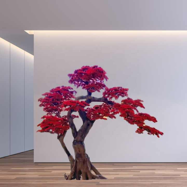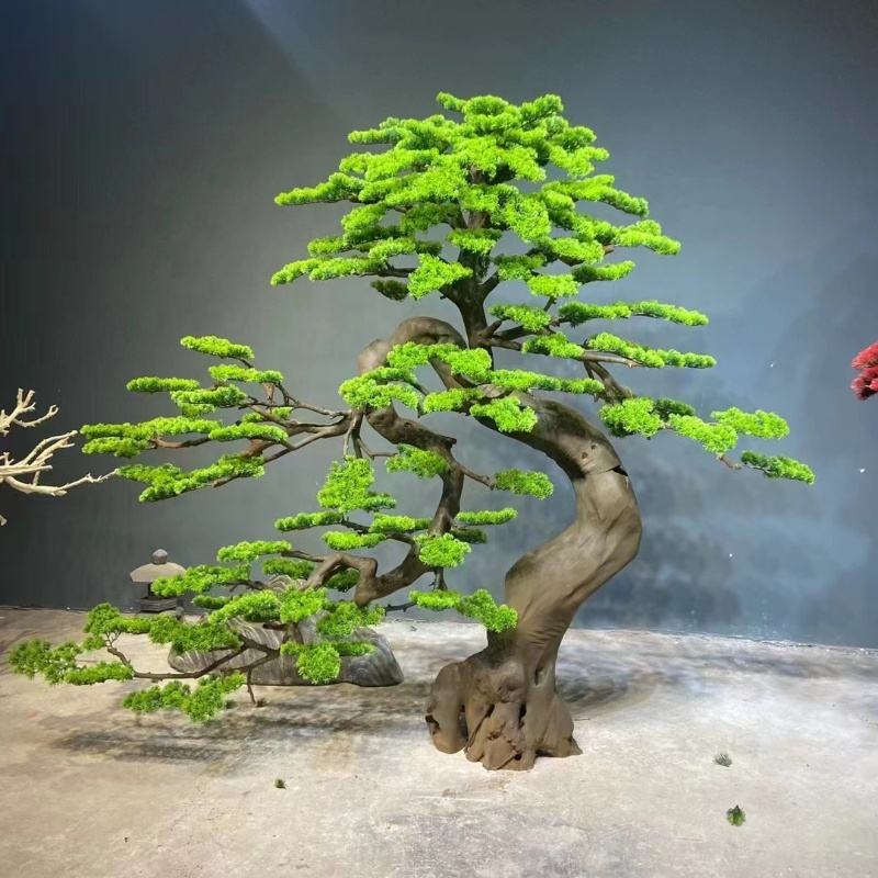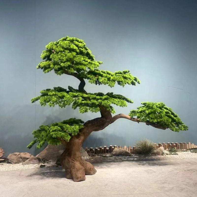 Grand faux pin paysager sur mesure avec tronc en bois naturel sculpté à la main pour projet de hall d'hôtel