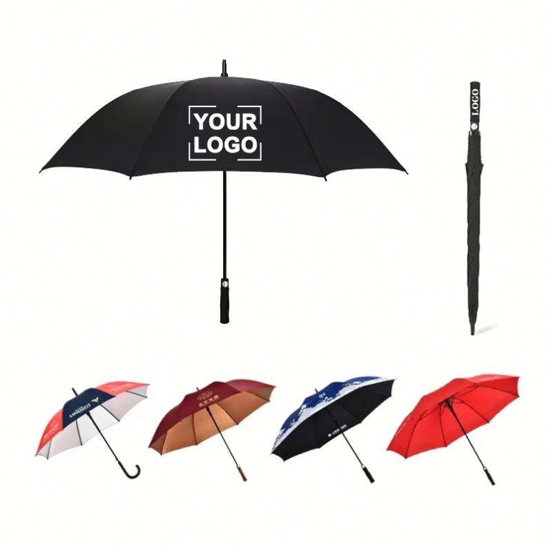 Grand parapluie de golf personnalisé avec logo imprimé, long manche, double parapluie pour femme, en fibre de verre, résistant au vent, hydrofuge, tissu anti-UV, coupe-vent