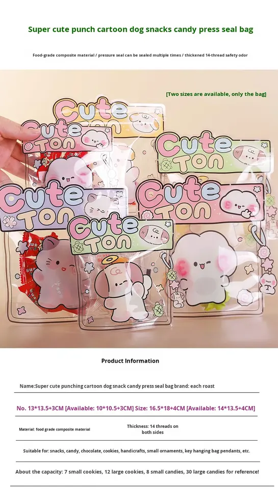 Grand sac de conservation refermable en PET/CPP avec fermeture éclair, motif dessin animé mignon, pour aliments pour bébés, enfants et étudiants