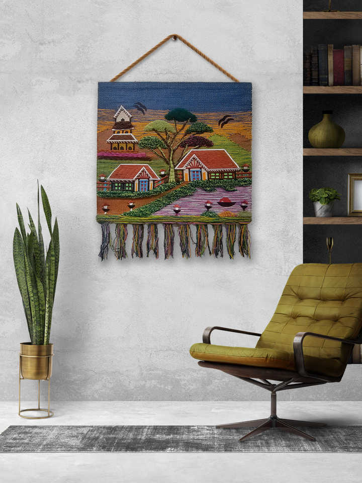 Grande tapisserie murale décorative en jute, faite à la main, en fibres naturelles durables, pour la maison et les espaces commerciaux