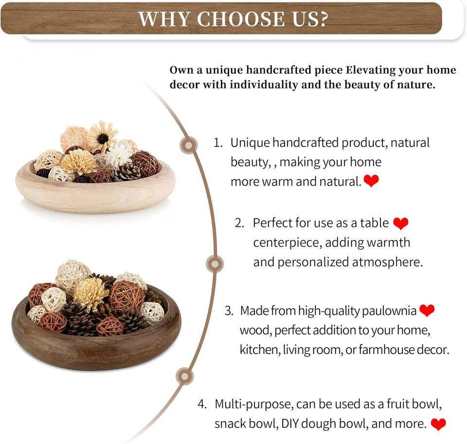 Large Modern Rustic Eco-Friendly Lightweight Paulownia Wooden Bowl Disposable Salad Fruit Bowl Wedding Coffee Table Handcrafted