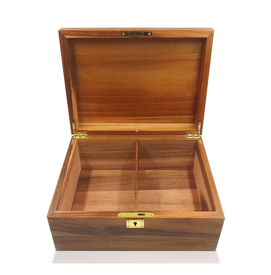 Fabricant de grandes boîtes de rangement décoratives en bois avec couvercle à charnière et clé de verrouillage Boîte de rangement souvenir en acacia de qualité supérieure Cadeau mémoire
