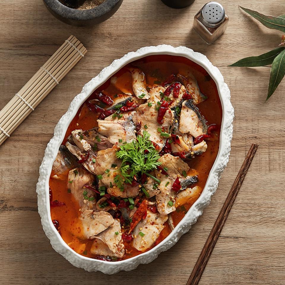Large Deep Rock Pattern Ceramic Plate for Steamed Fish Light Luxury Household and Hotel/Club Use for Lobster Sashimi Seafood
