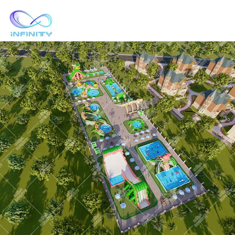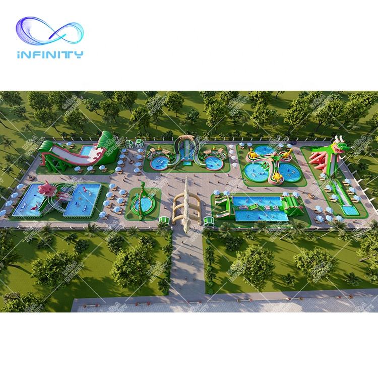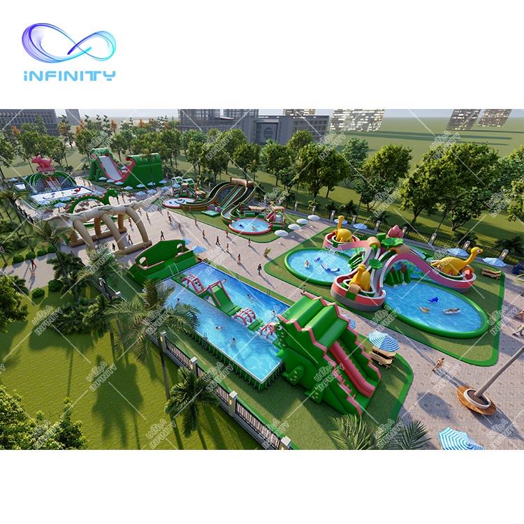 Grand parc aquatique à thème de dinosaures, piscine gonflable, toboggan aquatique, parc d'attractions gonflable, parc aquatique au sol, jeux commerciaux