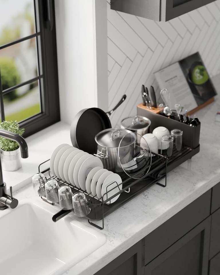 Grand égouttoir à vaisselle extensible multifonctionnel pour comptoir de cuisine, égouttoir à vaisselle antirouille