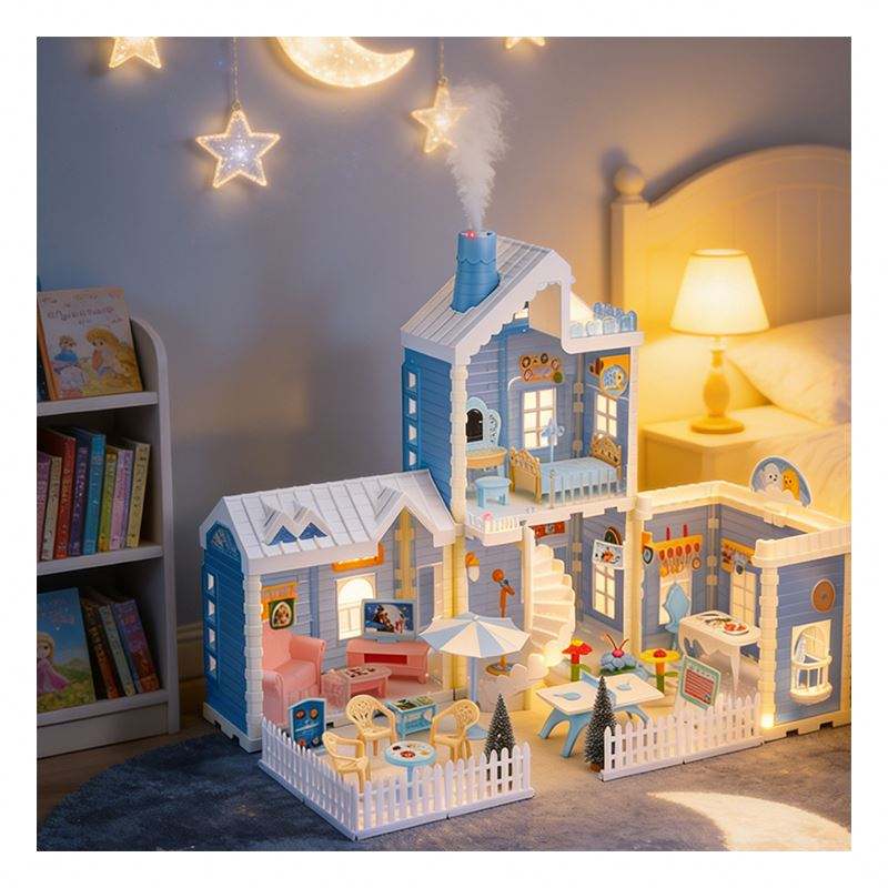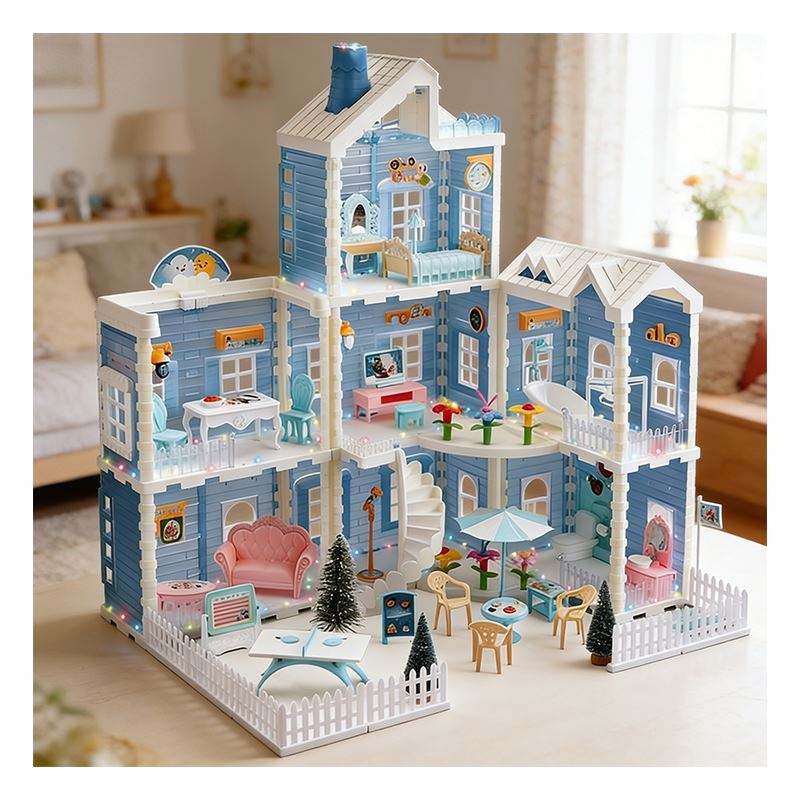 Grande maison de poupée en plastique avec piscine, toboggan, balcon, ascenseur, meubles de chambre, jouet DIY – Ensemble cadeau de jeu d'imitation pour la famille
