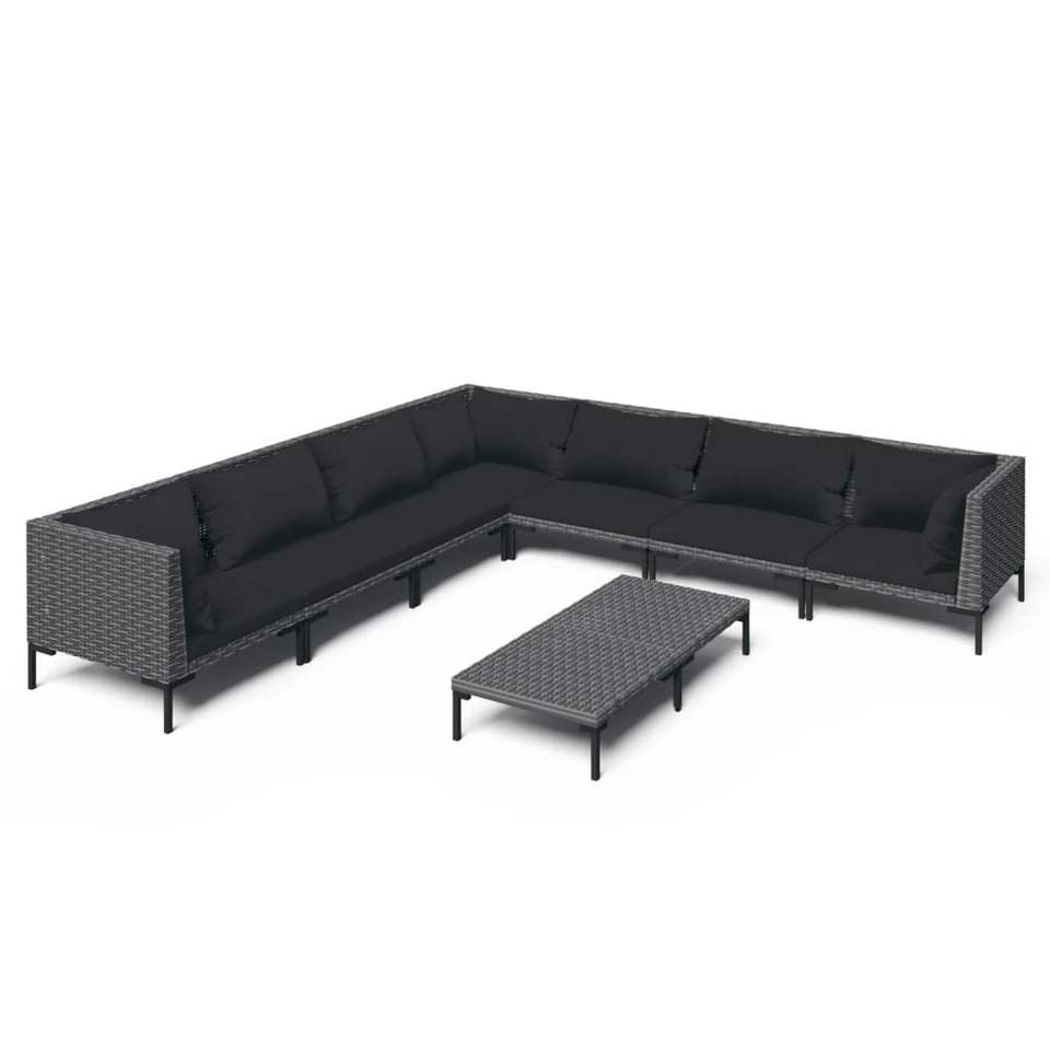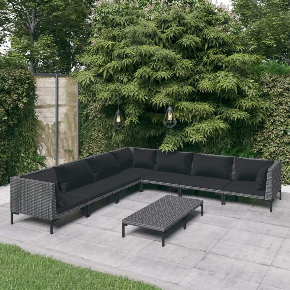 Grand ensemble de salon de jardin en acier enduit de poudre gris foncé, durable, 10+ places, mobilier d'extérieur contemporain