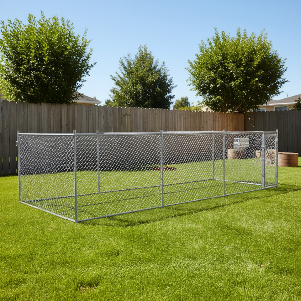 Grande cage pour chien en acier galvanisé gris, enclos pour animaux de compagnie, durable, rectangulaire, pour intérieur