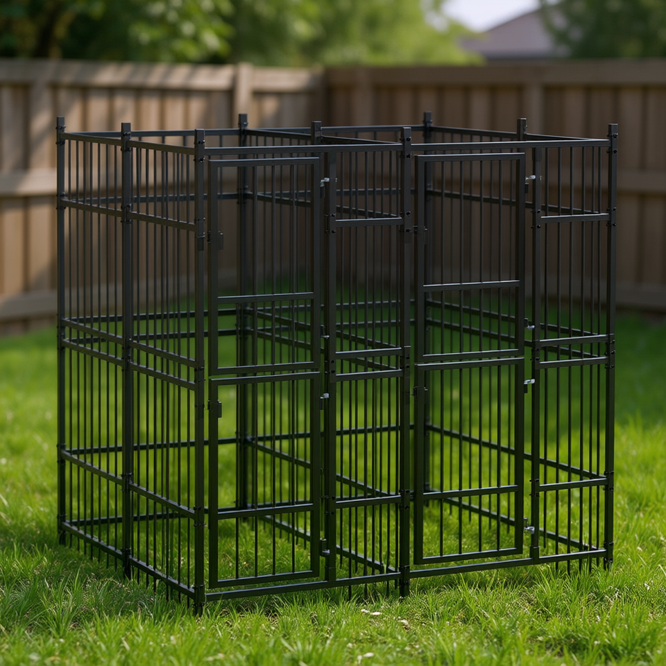 Grand enclos pour chien en acier noir thermolaqué, cage pour animaux de compagnie durable, utilisation en intérieur