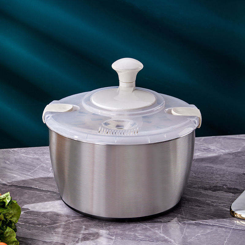 Grand essoreur à salade en acier inoxydable écologique, compatible lave-vaisselle, avec couvercle autobloquant, pour laitues et légumes
