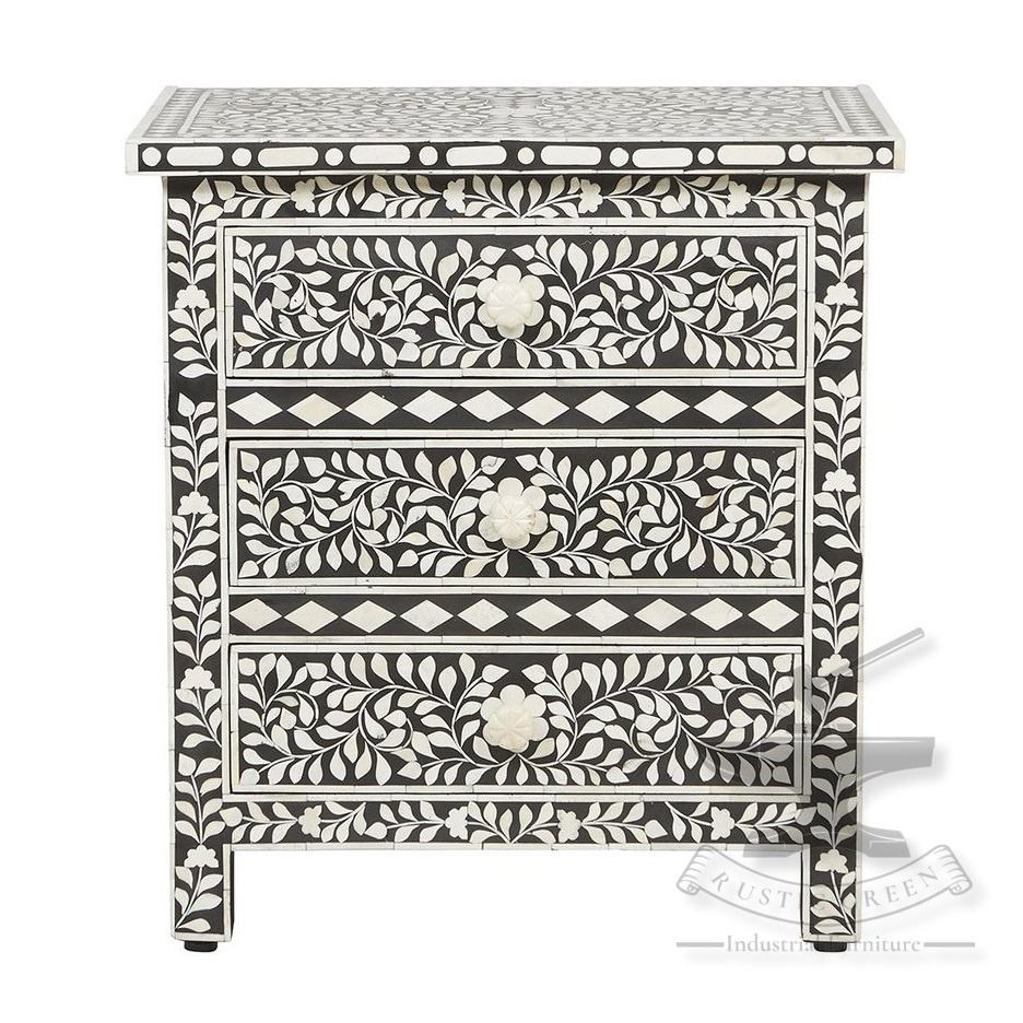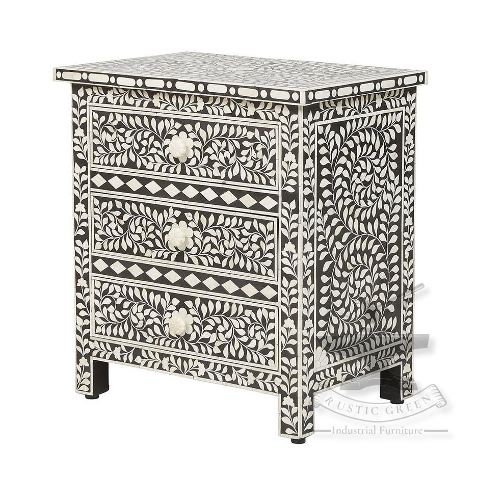Grande table d'appoint noire en os et incrustation de style européen avec design floral à trois tiroirs pour la maison, l'hôpital, l'hôtel ou le mobilier scolaire