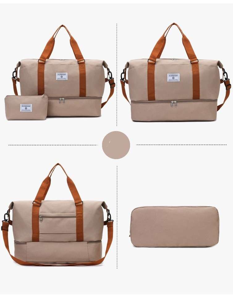Grand sac de sport extensible imperméable avec fermeture éclair, sac de voyage, sac de sport, sac de yoga, compartiment pour chaussures, sac de voyage portable en nylon pour la nuit