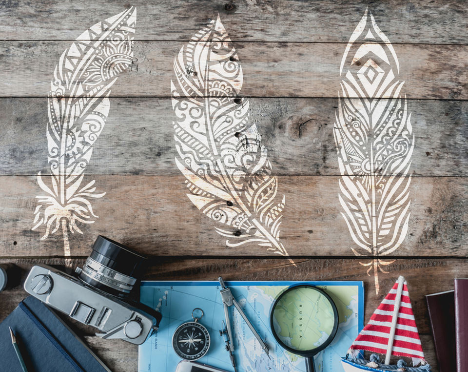 Grand pochoir fantaisie en plumes de mandala