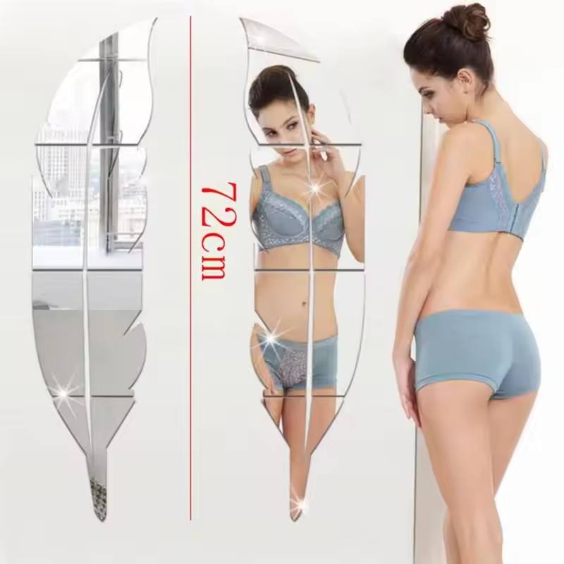 Grand autocollant mural miroir en forme de plume pour salon Art décor à la maison acrylique étanche autocollant autocollant abstrait décoration murale cadeau