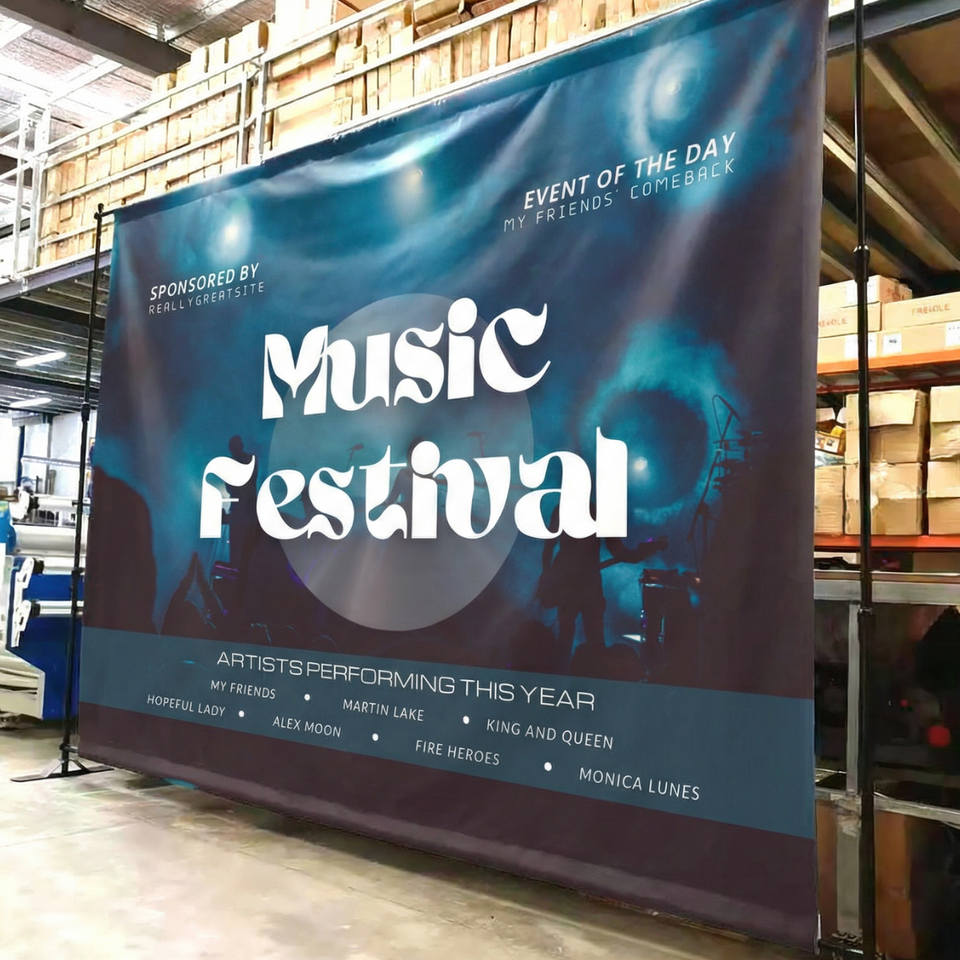 Grande bannière flexible, taille personnalisée, impression UV, toile de fond d'événement, usine d'impression au Vietnam