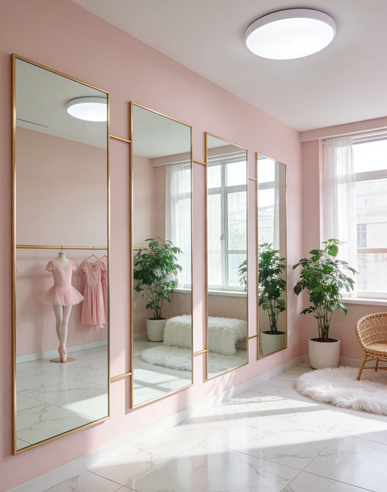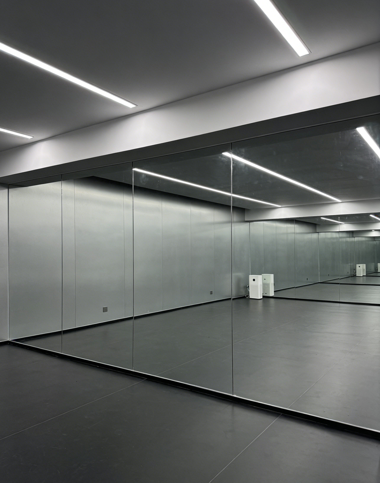 Grand miroir de studio de danse sans cadre HD mural, verre trempé de 5 mm avec dos de sécurité, personnalisable pour la salle de sport