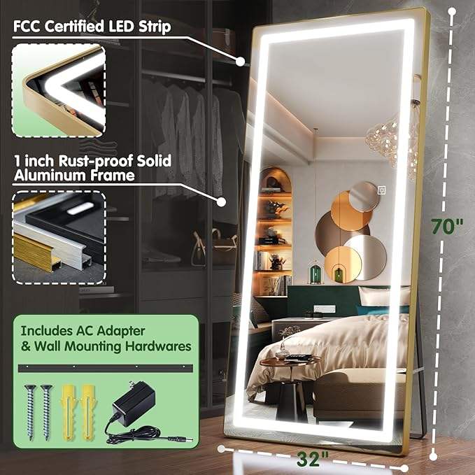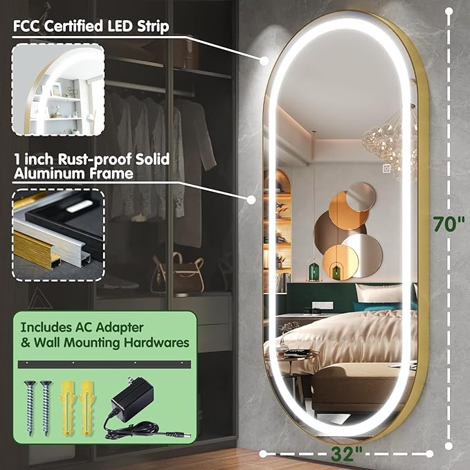 Grand miroir pour habillage intégral avec interrupteur tactile à lumière LED Miroir à cadre antidéflagrant en verre trempé d'approvisionnement d'usine