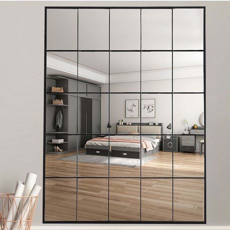 Grand miroir mural suspendu de style grille de fenêtre, pleine longueur, décoration intérieure, design avec cadre en fer, couleur noire, élégant, Espejo Spiegel