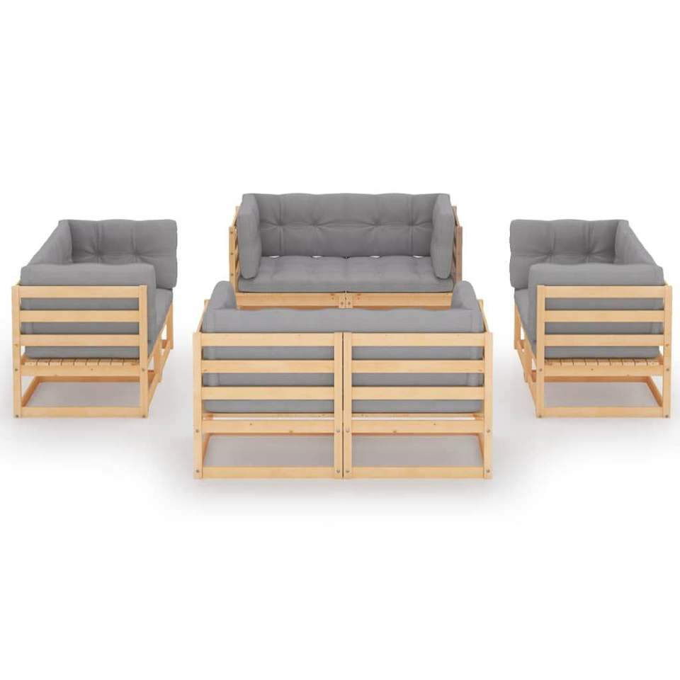 Grand ensemble de salon de jardin en pin massif avec polyester, collection de meubles élégante et durable