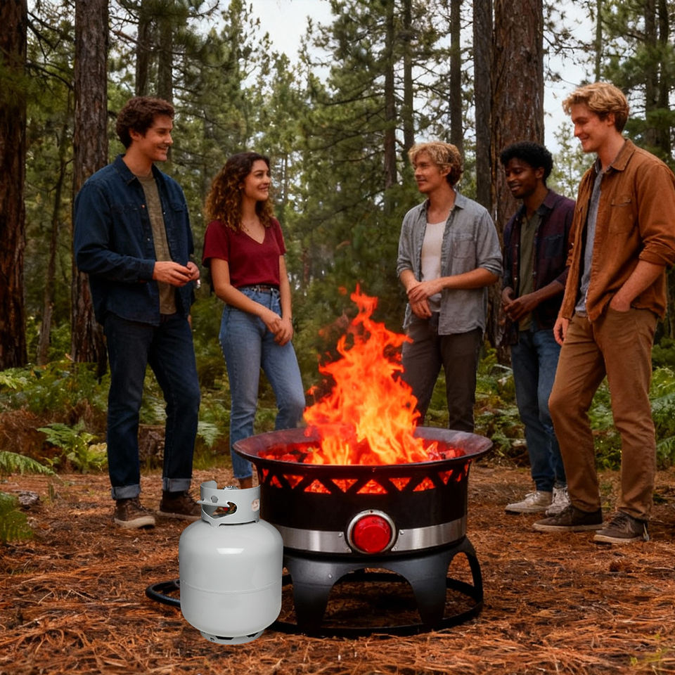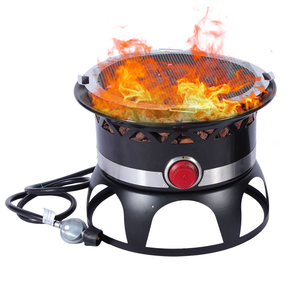 Grand foyer à gaz avec couvercle de brasero et kit de transport pour patio de jardin et pique-nique en plein air