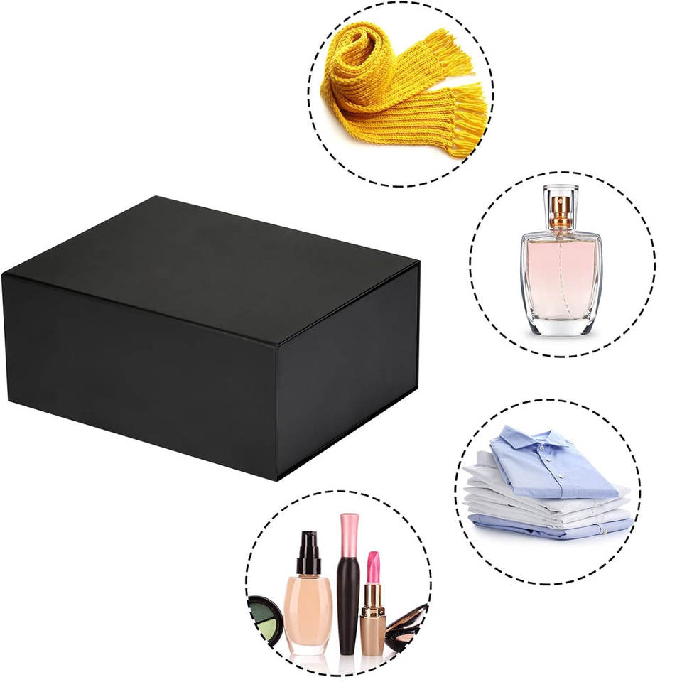 Grande boîte cadeau pour cadeau, 12x9x4.3 pouces, boîte cadeau noire avec couvercle magnétique, grande boîte cadeau pliable noire avec rubans