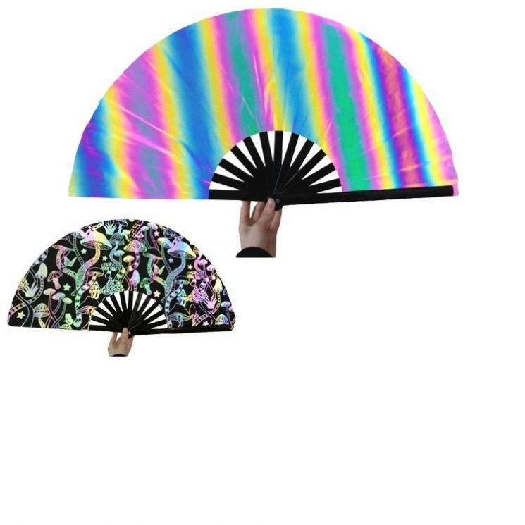 Grand éventail pliant à paillettes pour rave, en bambou, technique de peinture