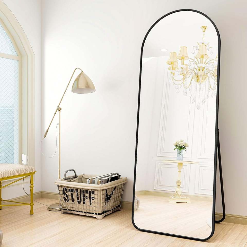 Large Gold Black Framed Dressing Mirror Modern Glam Oval Design Arched Floor Wall Mount Free Standing Full-Length Body Spiegel