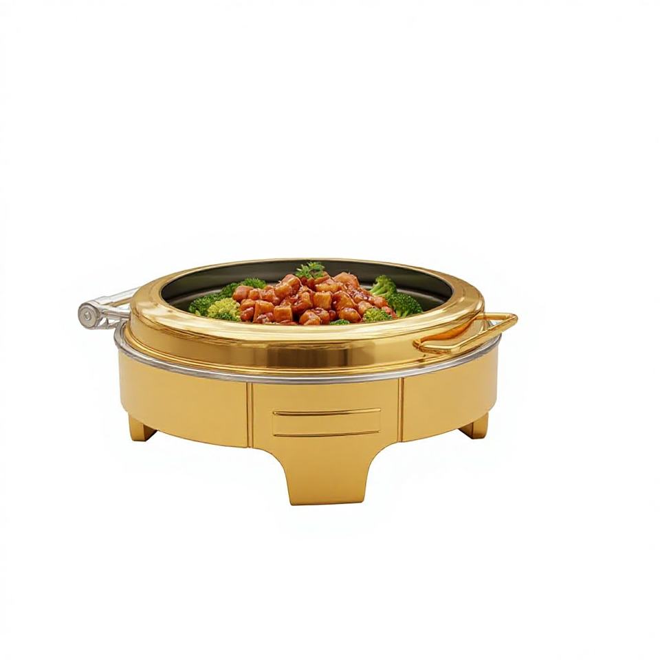 Grand réchaud de présentation doré, chauffe-plats électrique sans fumée, en acier inoxydable, pour restaurants et hôtels, OEM