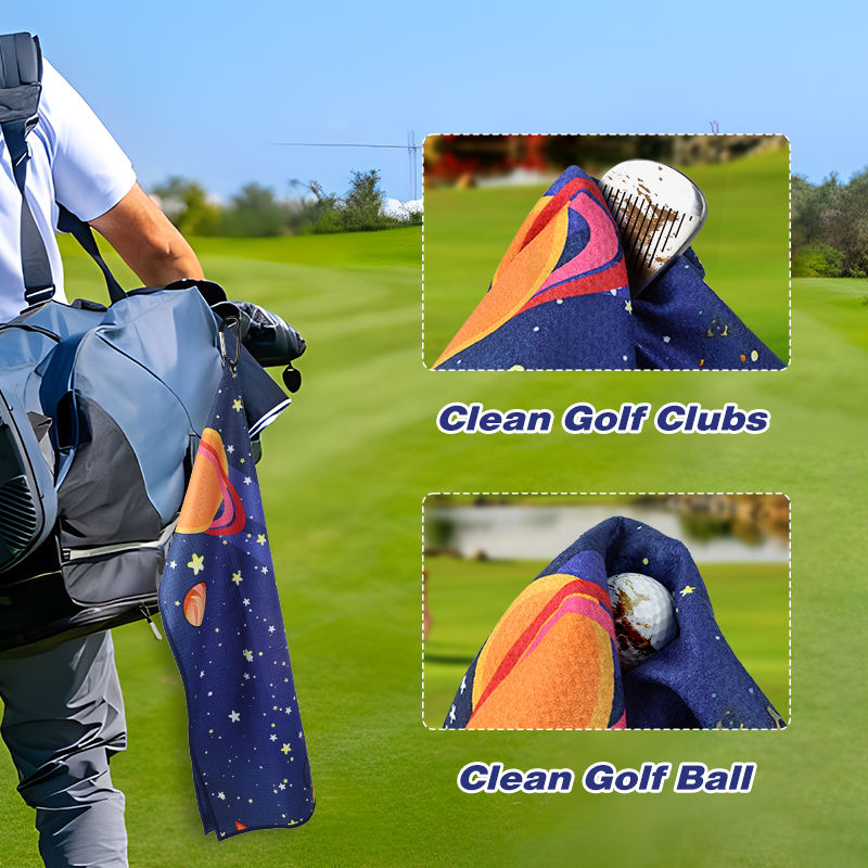 Grandes serviettes de golf pour sac de golf avec mousqueton pour enlever rapidement le sable, la boue, la saleté et la sueur
