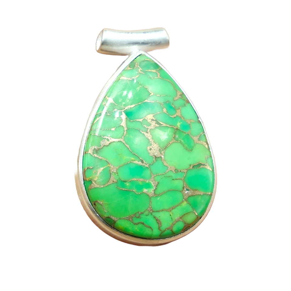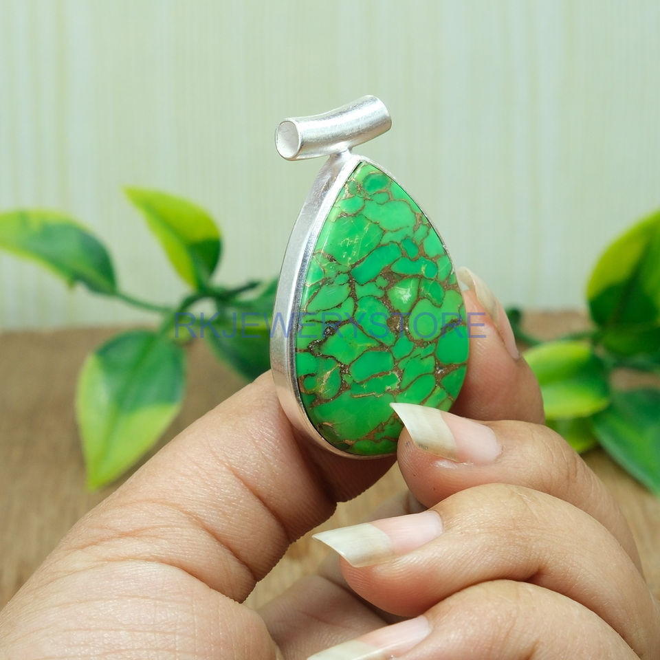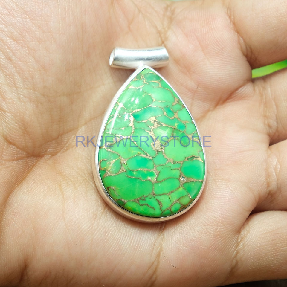 Grand collier pendentif en pierre turquoise cuivre verte, pendentif statement en argent sterling 925, pendentif en pierre verte, cadeau de Noël