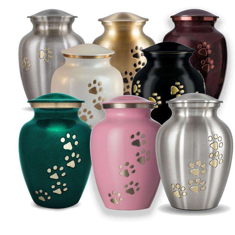 Grande urne verte de crémation pour adultes pour les cendres humaines empreinte de patte avec des finitions élégantes pour les cendres de chien et de chat
