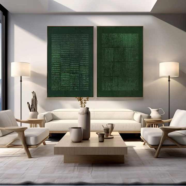 Grande toile acrylique abstraite Wabi Sabi verte, nature morte, tranquillité, art mural moderne, faite à la main, texture 3D, œuvre d'art pour la maison et l'hôtel, huile