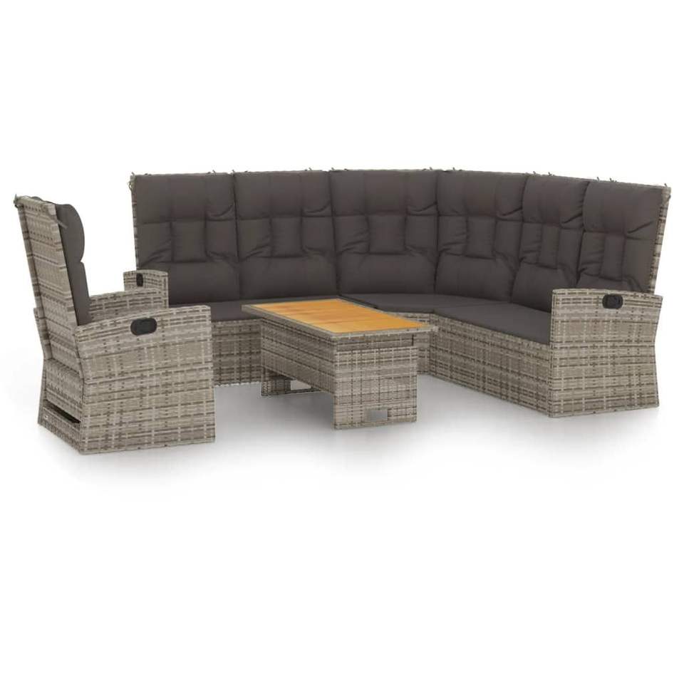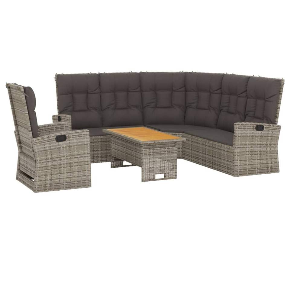 Grand ensemble de salon de jardin en rotin PE gris, collection de meubles d'extérieur durables